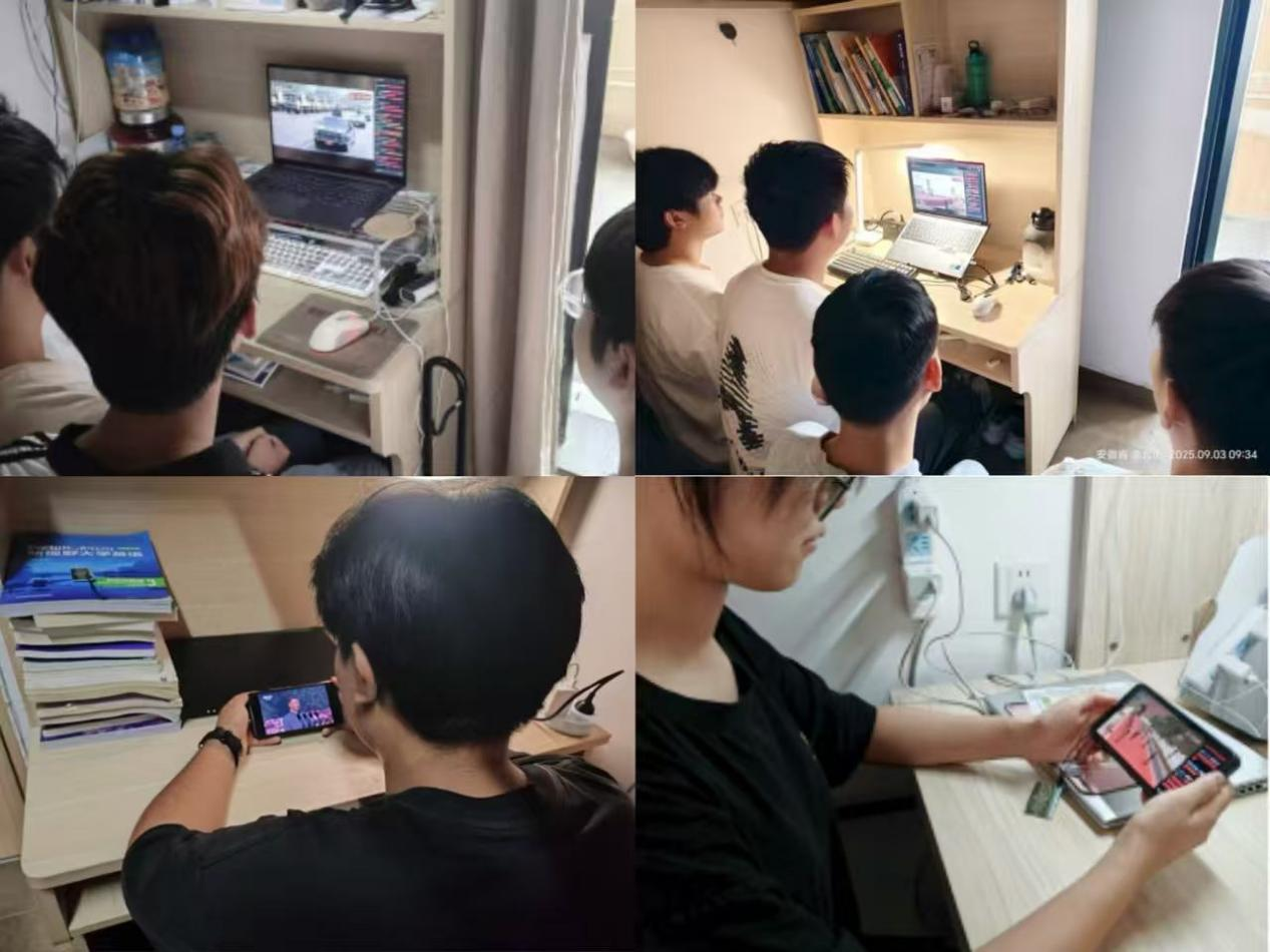 纪念活动开始前,BG大游集团官方网站的老师们早早地来到了集中收看地点,怀着崇敬的心情等待着活动的开始。收看过程中,全体教师凝神屏息,专注聆听,仿佛置身于大会现场,共同感受那跨越时空的历史回响与时代强音。