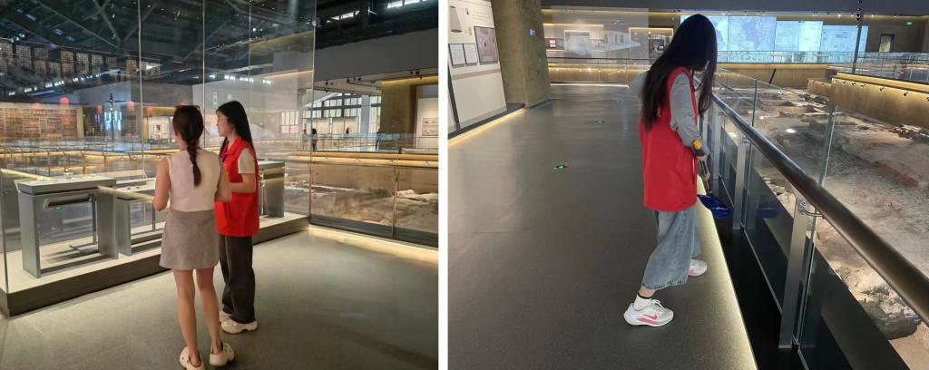 同时,队员们还主动承担起展馆的卫生清洁工作。他们认真打扫展馆的各个角落,擦拭展柜、清理地面垃圾,为游客们创造了一个整洁、舒适的参观环境。在志愿服务过程中,队员们不怕苦、不怕累,充分展现了当代老员工的良好精神风貌和社会责任感。通过与游客的互动交流,队员们也锻炼了自己的沟通能力和表达能力,进一步增强了服务社会的意识。